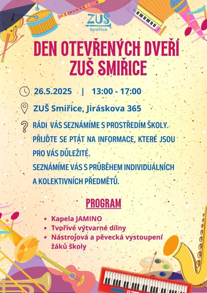 Zveme všechny budoucí žáky a zájemce o studium na náš tradiční Den otevřených dveří! Přijďte se podívat, prozkoumat naši školu, poslechnout si hudbu, vyzkoušet nástroje a zažít atmosféru výuky. Rodiče se mohou těšit na odpovědi na své otázky, představení vyučovaných předmětů, hudebních nástrojů a setkání s pedagogy. Těšíme se na vás!